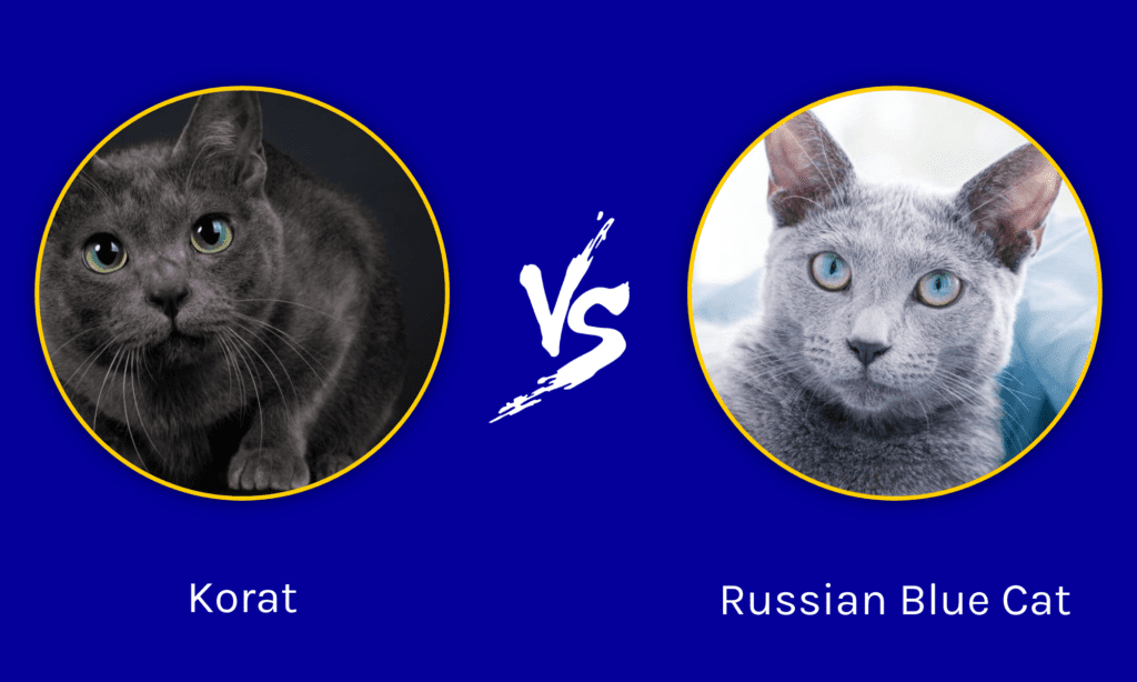 Le maggiori differenze tra un gatto Korat e un gatto blu di Russia includono la forma della testa, il tipo di pelo e il luogo di origine. Il Korat ha una testa a forma di cuore, originaria della Thailandia, e ha un unico strato di pelo corto e fine che è azzurro alla radice e più scuro man mano che cresce prima di terminare con una punta argentata. Il gatto blu di Russia ha una testa a forma di cuneo, originaria della Russia, e ha una doppia pelliccia con peli di guardia argentati.