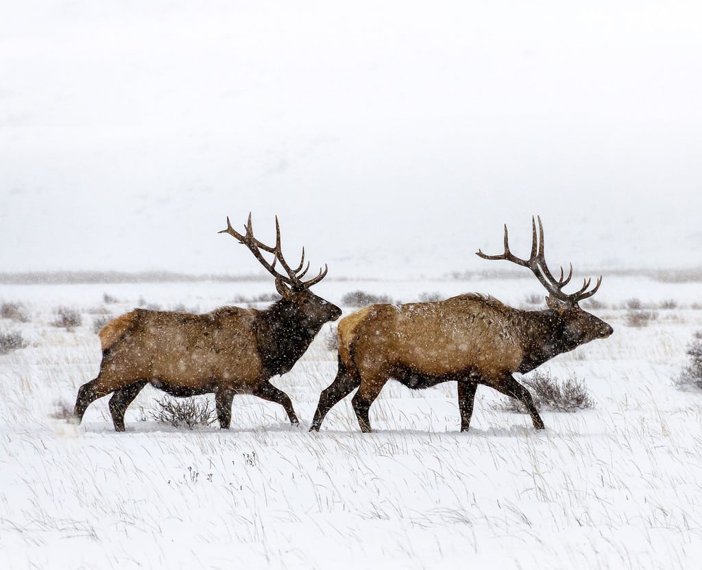 L’alce è il secondo erbivoro selvatico più grande, dopo l’alce. I maschi come questi due tori possono pesare fino a 1.000 libbre.
