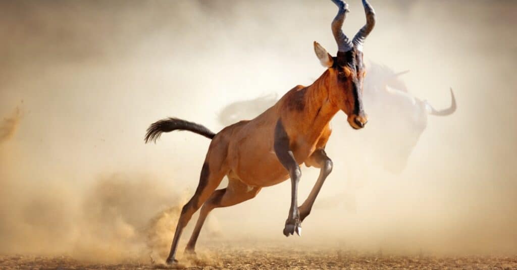 Conosciuto anche come kongoni, l’alcelafo vive nelle praterie e nelle savane dell’Africa sub-sahariana. Originariamente erano diffusi in tutto il Nord Africa e il Medio Oriente, ma la loro portata e il loro numero sono stati molto ridotti, in parte a causa della caccia. Esistono otto sottospecie riconosciute e gli hartebeest di Lelwel e Swayne sono in pericolo di estinzione, mentre l’hartebeest di Tora è in grave pericolo di estinzione. Hartebeest può raggiungere circa 4 piedi e 11 pollici alla spalla e sono meglio conosciuti per le loro lunghe fronti e corna che possono curvarsi in vari modi, a seconda della sottospecie. I loro corpi sono marroni o abbronzati e hanno segni neri sulle gambe. Gli Hartebeest vivono in grandi mandrie fino a 300 animali e, sebbene siano generalmente di natura calma, sono sempre vigili. Leoni, leopardi, iene, licaoni, ghepardi e coccodrilli sono tutti predatori di hartebeest.