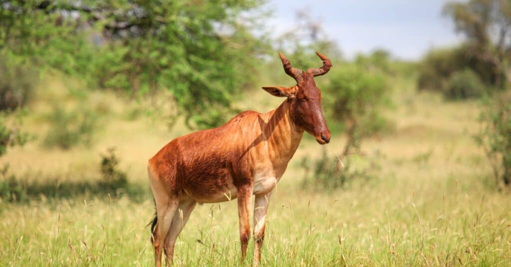 Il primo della lista è il comune tsessebe che raggiunge un’altezza della spalla di 4 piedi e 3 pollici. Si trovano in Angola, Botswana, Eswatini, Namibia, Zimbabwe e Zambia, dove preferiscono vivere nelle praterie e nelle pianure aperte. Gli tsessebe comuni sono grandi antilopi marrone scuro che hanno una notevole gobba alla base del collo e corna lunghe 16 pollici. Gli tsessebe comuni sono antilopi sociali e le mandrie di solito sono composte da circa 10 femmine e dai loro piccoli. Una volta raggiunto l’anno di età, i maschi lasciano la mandria della madre e vivono in grandi branchi scapoli di un massimo di trenta tori. I leoni sono i principali predatori dei comuni tsessebe, anche se gli sciacalli e le iene spesso catturano i giovani.
