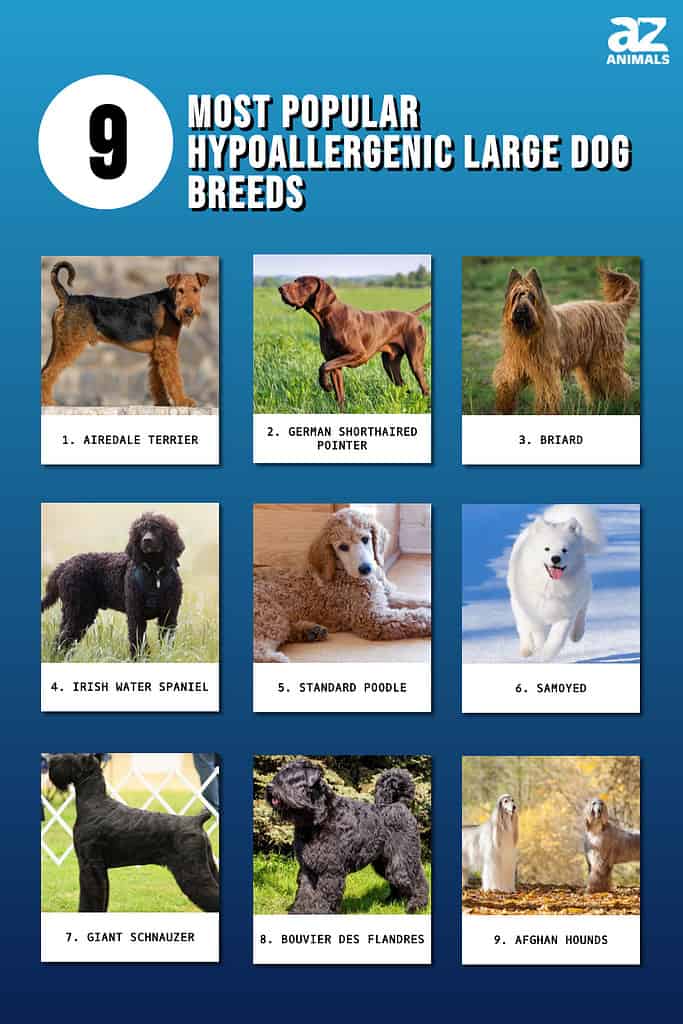Sebbene molte persone amerebbero avere un cane di grossa taglia come animale domestico, le allergie possono rappresentare un ostacolo importante. Fortunatamente, alcune specie di cani hanno meno probabilità di causare reazioni allergiche. Possono perdere meno pelo, produrre meno forfora rispetto alla razza media o entrambe le cose. Questi cani sono spesso definiti ipoallergenici, anche se non è esattamente così. È importante rendersi conto che nessun cane è completamente ipoallergenico. Tuttavia, daremo un’occhiata alle 9 razze di cani di grossa taglia e ipoallergenici più popolari che potresti portare a casa tua e che sono meno allergeniche! In questo modo, otterrai il vantaggio di un ottimo animale domestico e allo stesso tempo allevierai le tue allergie.