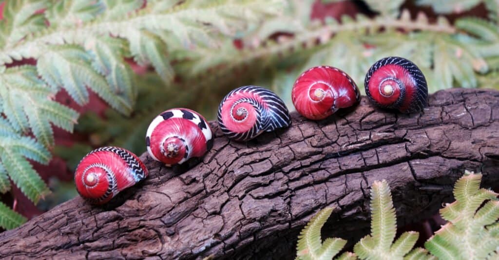 • La spettacolare Red Nerite Snail delle Filippine presenta sorprendenti motivi di rosso, giallo e nero. Non ce ne sono due uguali!