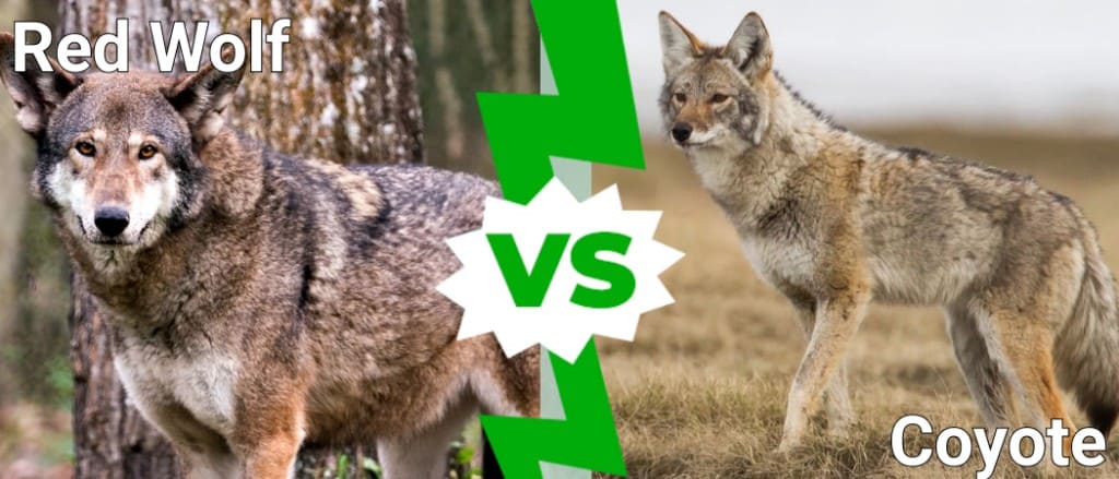 Le differenze più evidenti tra un lupo rosso e un coyote sono le dimensioni, il muso e i colori. Il lupo rosso è più grande di un coyote di una quantità significativa, quasi raddoppia il suo peso ma è quasi alla stessa altezza dell’altro.