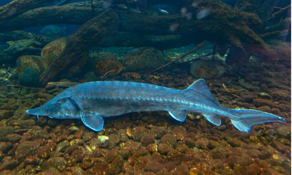 Gli storioni atlantici sono dinosauri viventi. Sono considerati pesci preistorici poiché esistono da oltre 200 milioni di anni. Esistevano durante il periodo Cretaceo quando i dinosauri vagavano sulla terra. Il suo nome scientifico è Acipenser oxyrhynchus, che significa “pesce dall’altra parte delle montagne”.