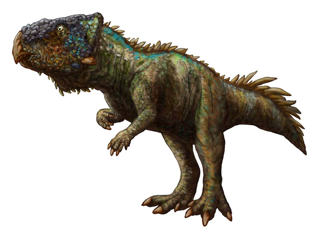 Un altro dinosauro relativamente piccolo era l’Heterodontosaurus, che raggiungeva solo i 3 piedi e 10 pollici e i 5 piedi e 9 pollici. Il suo nome significa “lucertola dai denti diversi”, qualcosa che è evidenziato dai tre diversi tipi di denti che possedeva: canini prominenti, incisivi più piccoli e denti “a scalpello” adatti per masticare materiale vegetale. L’Heterodontosaurus visse durante il Giurassico inferiore nella regione che oggi è il Sud Africa.