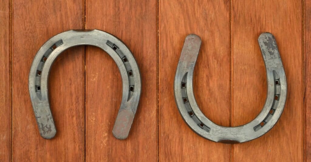 I ferri di cavallo sono pezzi di metallo a forma di U che sono attaccati alla parte inferiore degli zoccoli di un cavallo. La forma a U imita l’aspetto dello zoccolo di un cavallo. Normalmente, un ferro di cavallo è attaccato allo zoccolo di un cavallo usando dei chiodi. Tuttavia, a volte viene utilizzata una colla speciale per far aderire temporaneamente la scarpa a uno zoccolo.