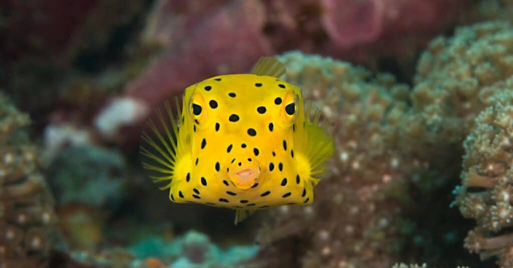 Un pesce scatola a macchie gialle – il pesce scatola rilascia veleno attraverso la pelle nell’acqua circostante