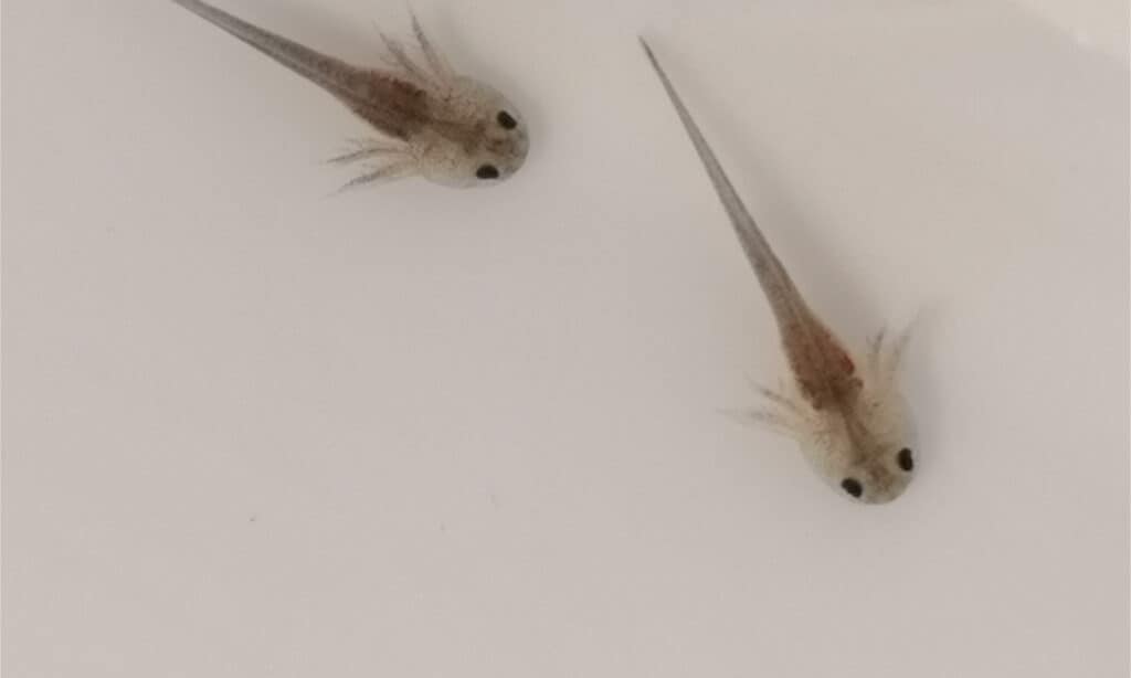 Nati come uova, i piccoli axolotl sono lunghi circa 0,5 pollici.
