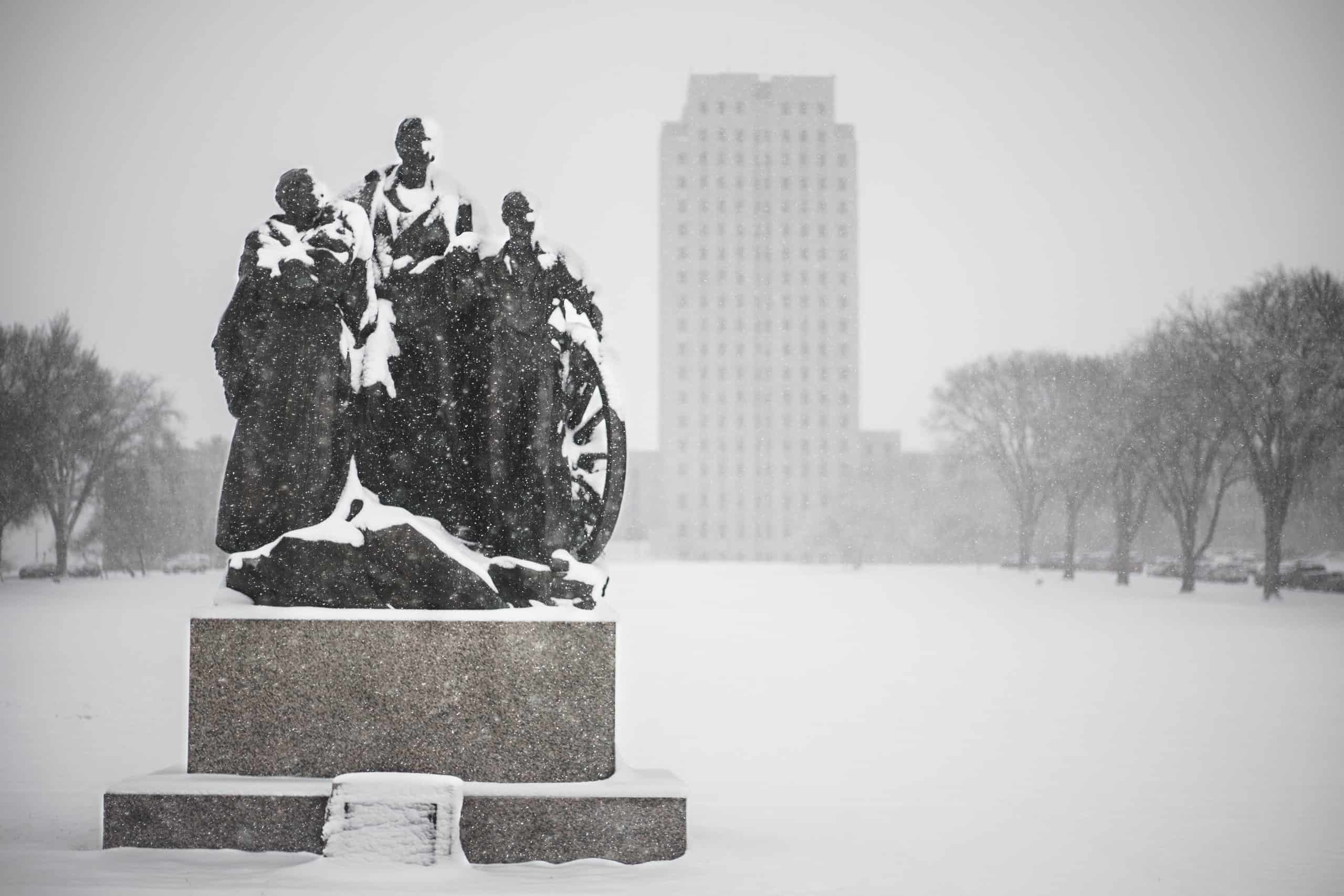 Gli inverni nel Nord Dakota sono brutalmente freddi con una media di 8,5 pollici di neve a marzo.