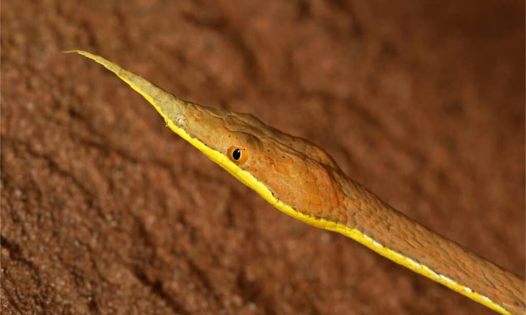 Come il suo nome, la vipera dal naso ha un grande “corno” squamoso sulla punta del naso, di solito lungo circa ¼ di pollice. Questi serpenti vivono in habitat temperati in Europa e crescono tra 30-36 pollici di lunghezza. Le vipere dal naso preferiscono vivere ai margini di foreste e arbusti e lungo i pendii rocciosi. Questi serpenti hanno grandi zanne che possono crescere fino a ½ pollice, con veleno tossico. Tuttavia, la vipera dal naso non è nota per essere aggressiva e pochissimi esseri umani sono morti a causa del suo morso.