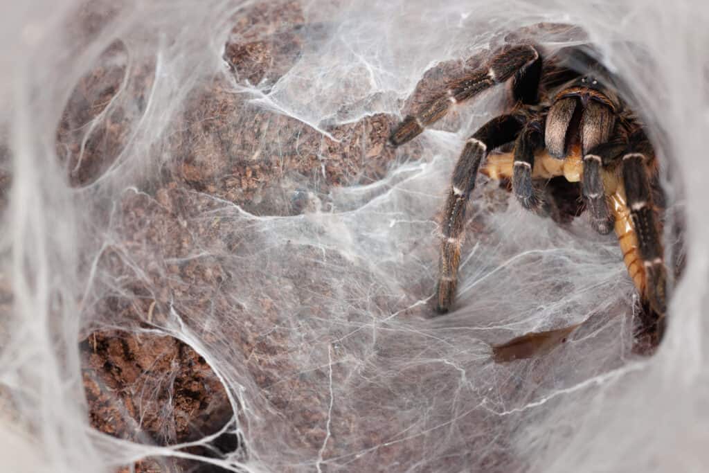 Una tarantola tenuta in cattività non farà ragnatele se non gli piace la sua casa. Devono essere presenti fattori come un’illuminazione adeguata, una buona ventilazione e la giusta umidità. Anche una tarantola ferita o malsana non tesserebbe ragnatele.