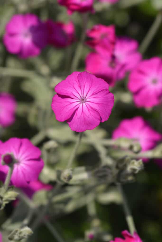 Rose Campion ha fiori con petali di forma rotonda, che di solito sono di uno splendido colore magenta.