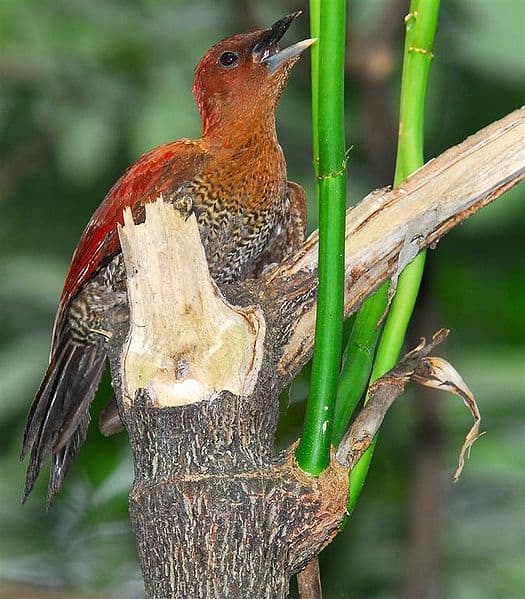 Il picchio di Okinawa ha piume marrone scuro con punte rosse. L’uccello maschio ha una corona rossa sulla testa, che esemplifica il dimorfismo sessuale. Il dimorfismo sessuale descrive quando maschi e femmine della stessa specie hanno caratteristiche fisiche nettamente diverse. Questo il più delle volte a causa della selezione sessuale, che è quando c’è competizione tra un sesso di una specie per l’accesso ai compagni.