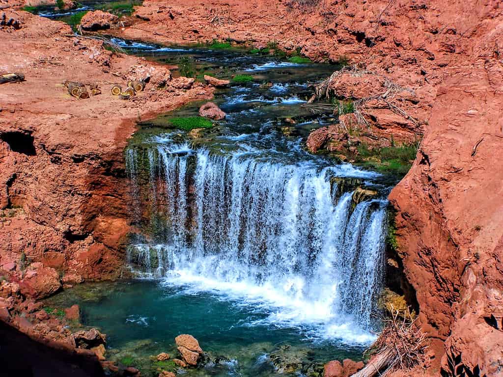 I terreni della tribù Havasupai in Arizona sono ben noti per avere alcune delle cascate più belle del mondo e sono attualmente tra le destinazioni di viaggio più popolari nello stato. Le acque turchesi che tagliano il pavimento del Grand Canyon offrono alcune delle più belle opportunità fotografiche sullo sfondo delle ripide scogliere rosse e del paesaggio desertico. Questa è la casa delle incredibili Beaver Falls in Arizona. Questa cascata si distingue per la sua enorme caduta di 50 piedi! Un’enorme alluvione all’inizio del 1910 lo distrusse, creando una serie di sporgenze e pozze.