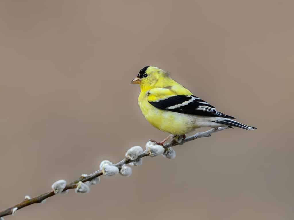 I cardellini di salice sono piccoli uccelli e raggiungono solo circa 5 pollici di lunghezza. Sono uccelli molto attivi con abilità di volo impressionanti, che si tuffano e si alzano con grazia in uno schema ondulatorio mentre si librano nel cielo. I cardellini di salice mangiano principalmente semi e amano particolarmente i semi di olmo, cardo e girasole.