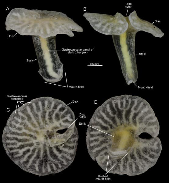 I dendrogrammi sono animali dall’aspetto di piccoli funghi con un rudimentale sistema gastrovascolare. Non hanno un sistema nervoso né organi sessuali.