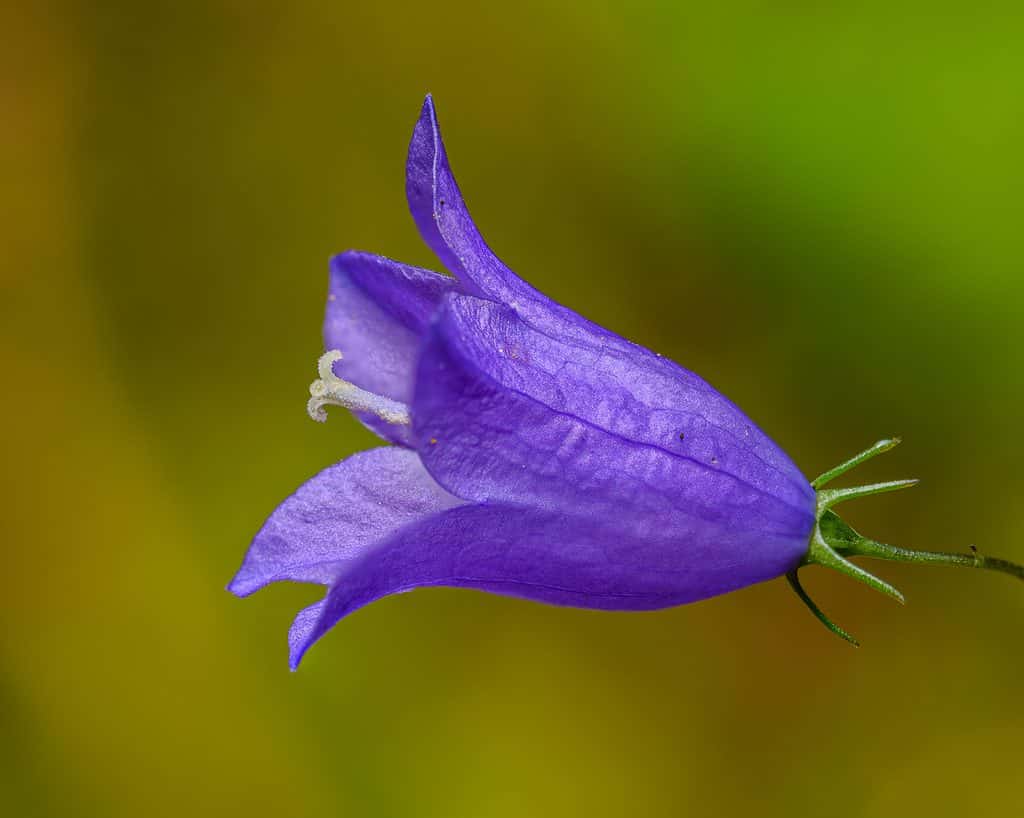 Harebell è una pianta da fiore perenne. Ha fiori blu o viola-blu che sono a forma di coppa oa campana. I fiori sono delicati e sbocciano tra la fine dell’estate e l’inizio dell’autunno. I fiori hanno cinque petali e sepali appuntiti verdi che proteggono il bocciolo. I petali sono ciascuno di forma triangolare e si incurvano verso l’esterno, permettendo ai minuscoli semi di cadere a terra.