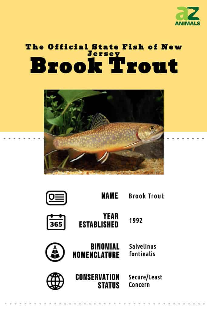 Il pesce dello stato del New Jersey è la trota di fiume. Nel 1991, il legislatore dello stato ha approvato l’Assemblea Bill 2608 per rendere ufficialmente la trota di fiume uno dei simboli dello stato del New Jersey, e il governatore James J. Fiorio lo ha firmato l’8 gennaio 1992.