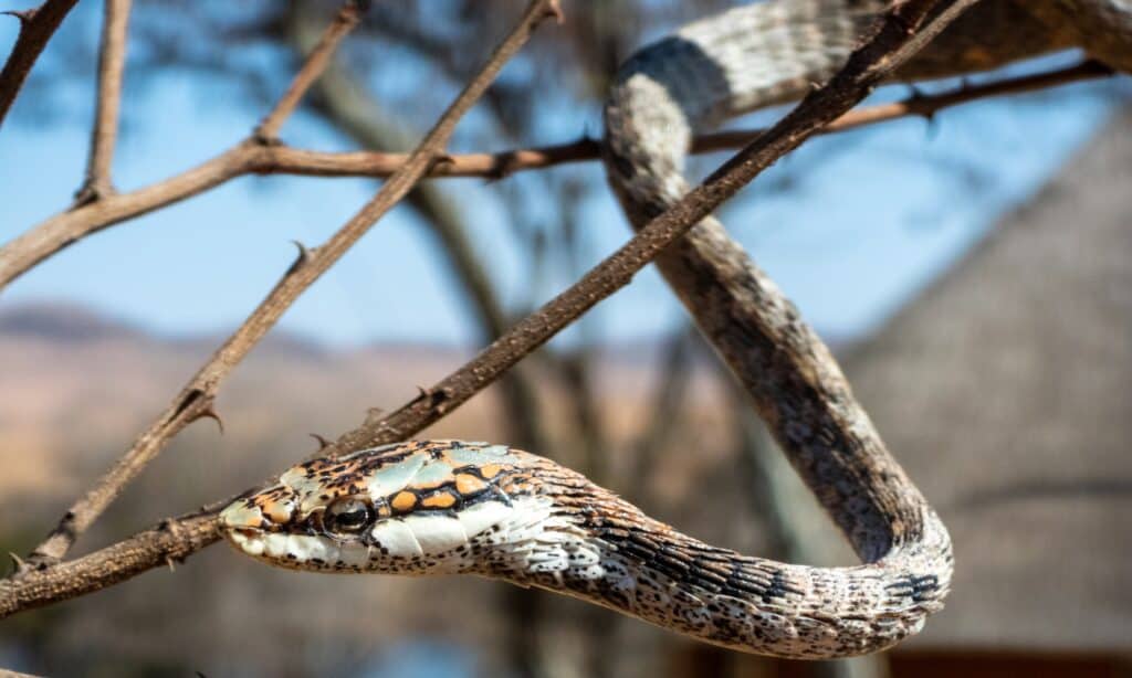Thelotornis sono anche conosciuti come serpenti di ramoscello, serpenti di vite o serpenti di uccelli. Sono serpenti velenosi con le zanne posteriori originari dell’Africa. Tutte le specie del genere Thelotornis hanno corpi snelli e allungati di circa 48 pollici, teste strette, lunghe code e musi appuntiti. Sono bruno-grigiastri con deboli macchie chiare e scure. Di tutti i serpenti di vite, i serpenti di ramoscello sono i più letali.