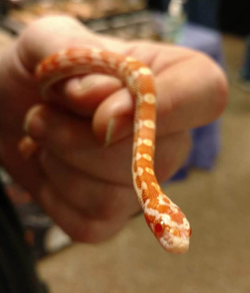 Il serpente del mais è una sottospecie di serpente di ratto originaria degli Stati Uniti sudorientali. I serpenti di mais sono tipicamente arancioni o rossi con strisce bianche e nere. Questi serpenti non sono velenosi e lunghi in media da 4 a 6 piedi, anche se alcuni possono crescere fino a 8 piedi. I serpenti del mais sono animali domestici popolari per la loro natura docile e la facilità di cura. Questi serpenti mangiano roditori come topi o ratti, uccelli e altri piccoli animali.