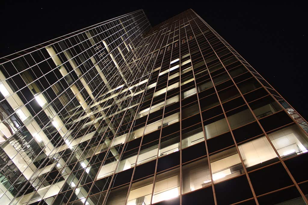 L’esterno in vetro riflettente della Chase Tower.