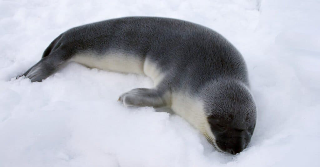 La foca incappucciata è una grande foca con pelliccia grigio argento con macchie nere. Hanno facce nere e arti piccoli. Sebbene i loro arti siano piccoli, queste foche sono esperti nuotatori e subacquei. I maschi sono un po’ più lunghi delle femmine ma pesano molto di più. Possono pesare in media 661 libbre contro i 353 libbre di una femmina e, naturalmente, possono gonfiare i loro passaggi nasali.
