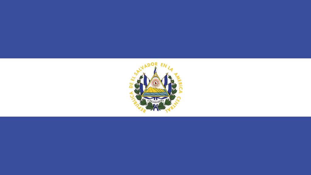 Tre strisce orizzontali blu-bianco-blu compongono la bandiera di El Salvador. La bandiera è divisa orizzontalmente in tre parti uguali che rappresentano il cielo, la pace e l’oceano. Questi colori sulla bandiera sono presenti nelle bandiere di altri paesi centroamericani, che rappresentano l’indipendenza delle Province Unite del Centro America dalla Spagna nel 1823. I due enormi oceani del Centro America sono anche simboleggiati dal colore blu sulla bandiera, mentre il colore bianco rappresenta la pace e l’unità nel mondo. Al centro della porzione bianca della bandiera è presente lo stemma del paese.