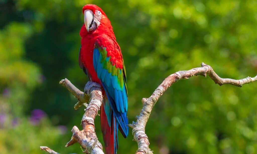 Quando la maggior parte delle persone pensa agli Ara, immagina l’ara scarlatta. Questo uccello è originario del Messico, dell’America centrale e del Sud America. Vivono in umide foreste sempreverdi e hanno subito un calo della popolazione a causa della deforestazione. Tuttavia, la loro specie rimane stabile. Questo uccello è popolare nel commercio di animali domestici per il suo sorprendente piumaggio e la sua personalità intelligente. Vivono nelle chiome delle foreste da soli o in coppia e si nutrono di frutta, noci, semi, fiori e nettare.