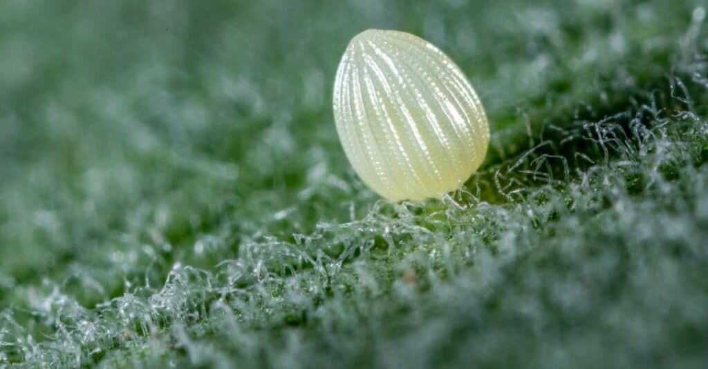 Non sorprende che l’aspetto delle uova di farfalla differisca tra i vari tipi di farfalle. Mentre le uova di farfalla monarca sono di colore bianco sporco e di forma ovale, le uova di una farfalla zolfo sono di colore verde chiaro con un’estremità appuntita. Inoltre, le uova di una piccola farfalla di rame sono di colore bianco/grigio con una superficie che ricorda una pallina da golf.