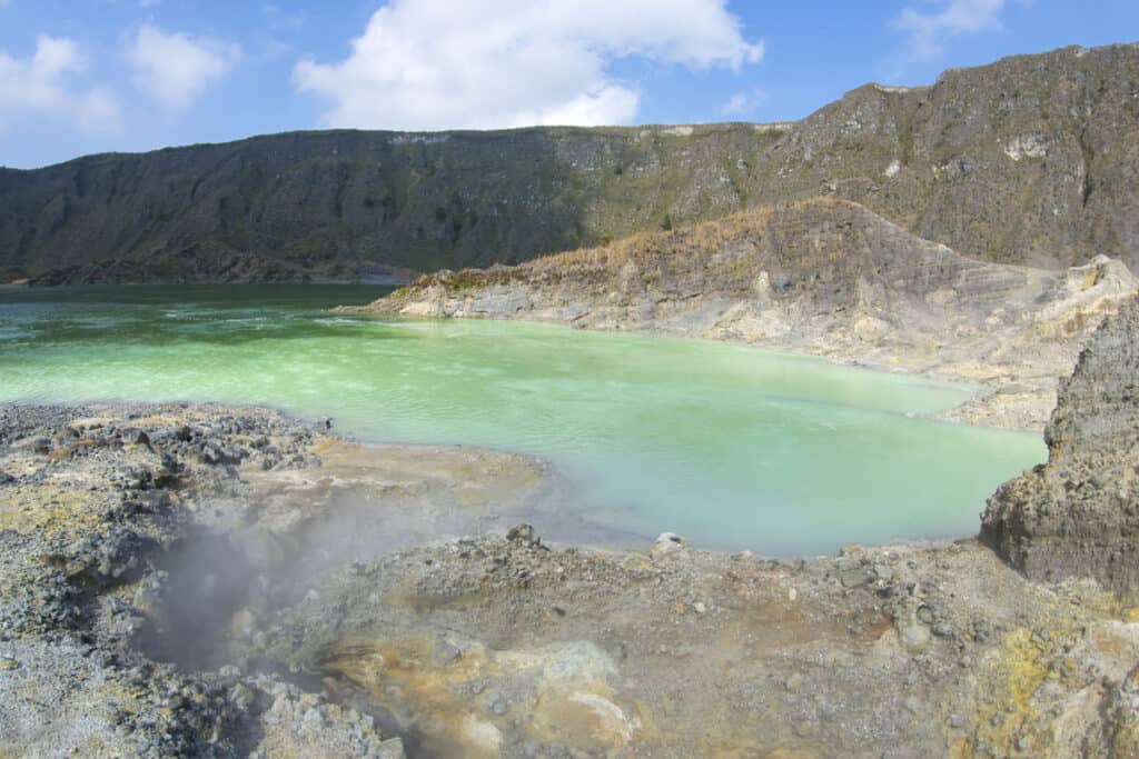 Una cupola di lava si forma quando la lava è troppo spessa per scorrere verso il basso, quindi si accumula insieme. El Chichon era sconosciuto fino a questa eruzione nel 1982. Le sorgenti termali si trovano lungo la superficie di El Chichon e ha un cratere pieno di un lago verde acido.